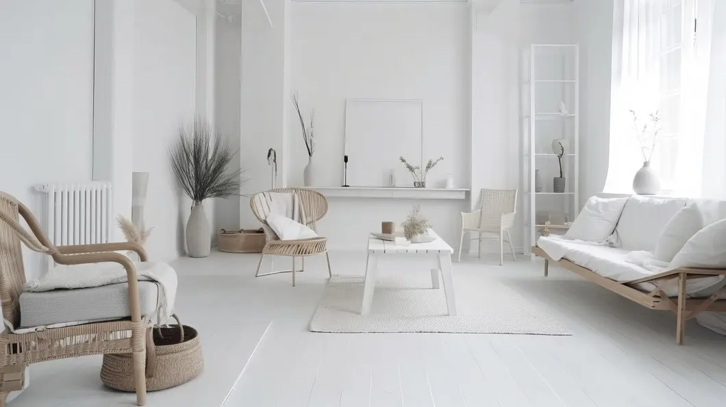 การเลือกใช้สีผนังห้อง เช่น สีขาว เทาอ่อน หรือเบจ จะช่วยให้ภายในบ้านดูโปร่งโล่ง และกว้างขวางมากขึ้น ซึ่งสีพื้นเหล่านี้ไม่เพียงทำให้ห้องดูเรียบง่ายแต่ยังช่วยเสริมให้เฟอร์นิเจอร์และของตกแต่งอื่น ๆ ดูโดดเด่นขึ้น นอกจากนี้ ผนังสีพื้นยังช่วยสร้างบรรยากาศที่ผ่อนคลาย เหมาะสำหรับผู้ที่ชื่นชอบความเรียบง่าย แต่ดูแพง